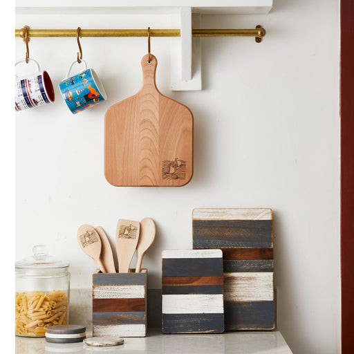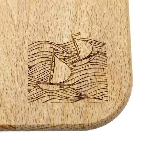 This beautiful beech wood chopping board has been laser engraved with an exclusive RNLI design of sailing boats at sea.