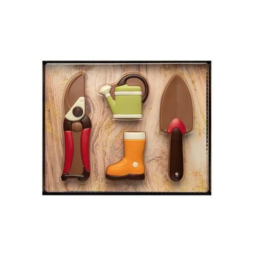 A colourful and fun set of tasty milk chocolates in the shape of classic garden tools.