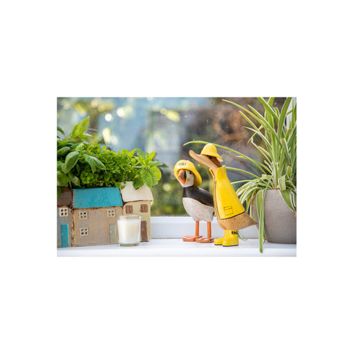 Elizabeth the puffin has been crafted by the DCUK company, who transform sustainable bamboo roots and off-cuts that would otherwise be wasted, into wonderful feathered characters. Carved, moulded and painted by hand by local people in Indonesia, each puffin is unique.
