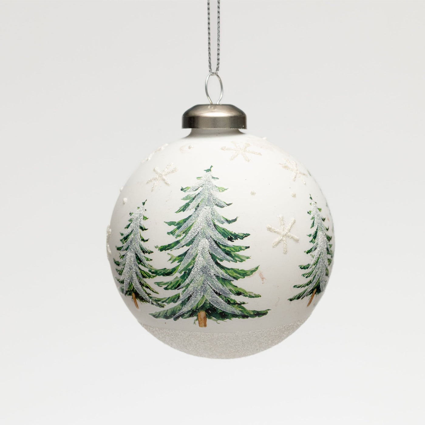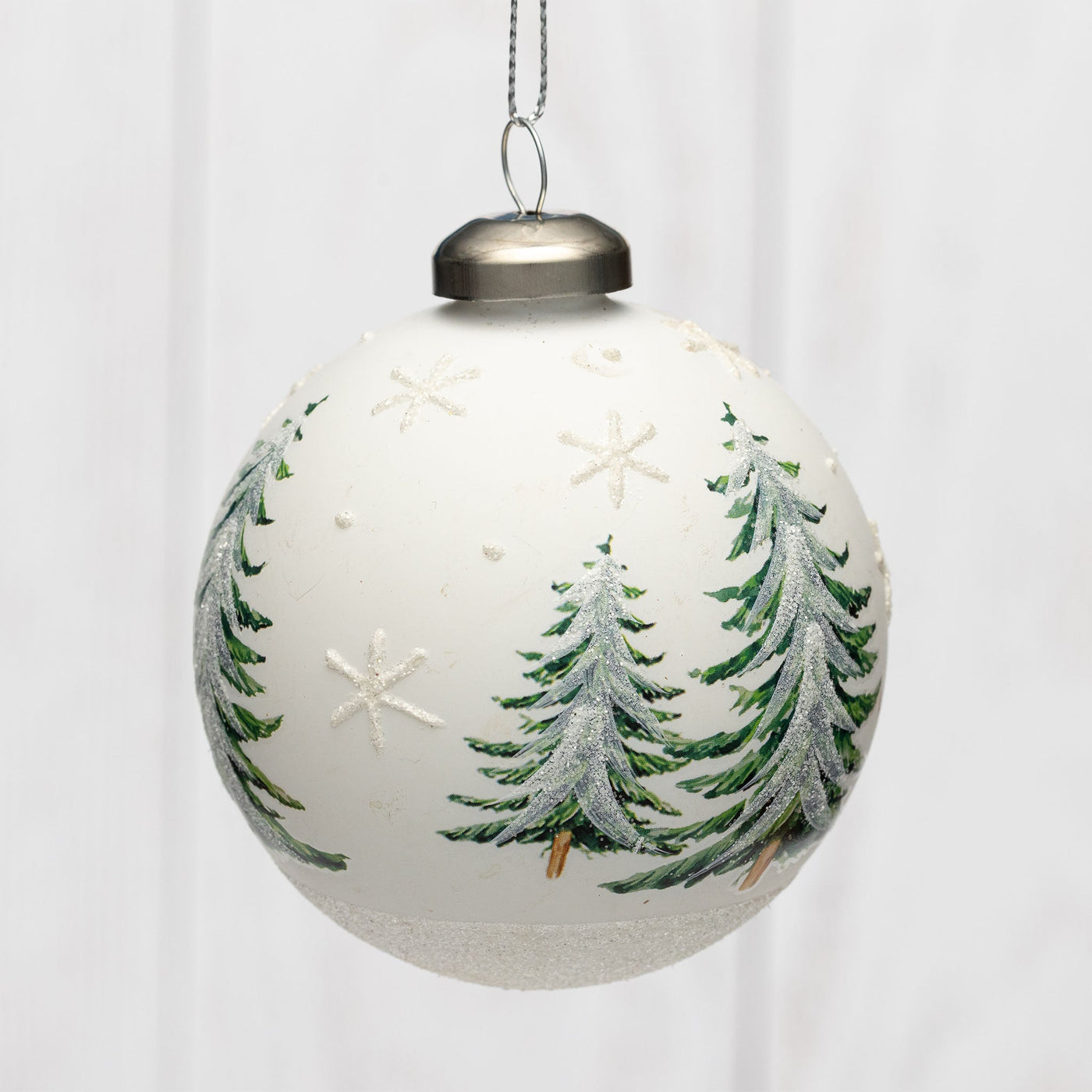 This stylish Frosted Trees Glass Christmas Bauble is sure to add a touch of elegance and class to your festive season. The delicate Christmas tree and snowflake designs on the glass are complimented by glitter details, making them sparkle underneath your Christmas lights.