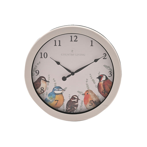 The clock features a bright white frame and an equally charming clock face adorned with playful images of colourful birds. Finished with an Arabic dial and stylish black spade clock hands, it's easy to read from across the lawn.