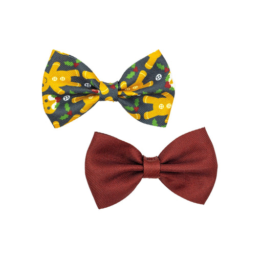 Make their day extra festive with these adorable doggy bow ties. This set of two comes with a plain red bow tie and a gingerbread printed one.