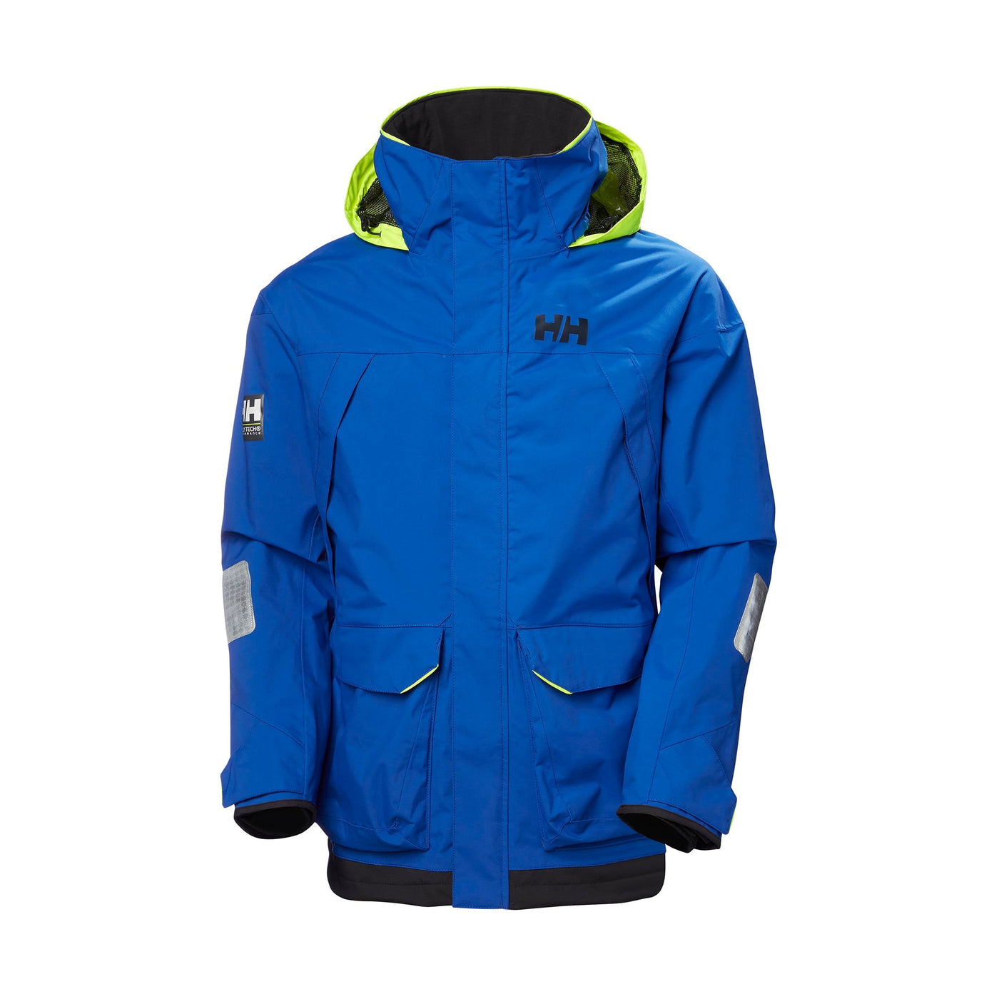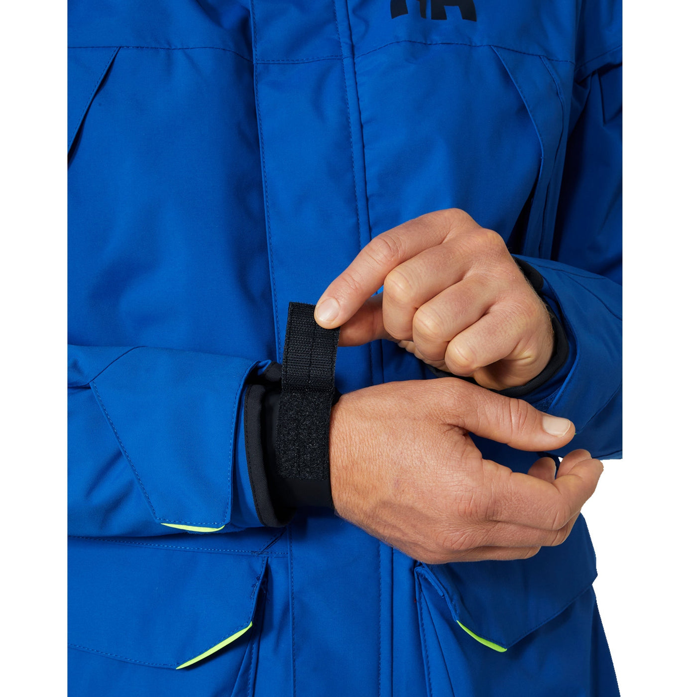 The packable neon yellow hood ensures visibility in low light conditions, while the double storm flaps and drainage system offer enhanced protection and comfort when the weather turns rough. Every detail of this jacket, from the adjustable cuffs to the high collar, has been designed to provide ultimate protection from the weather while out at sea.