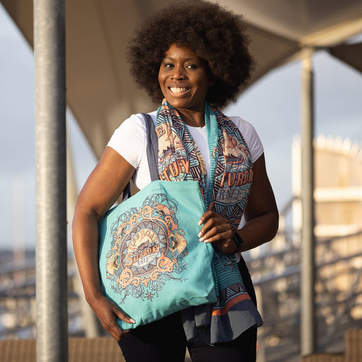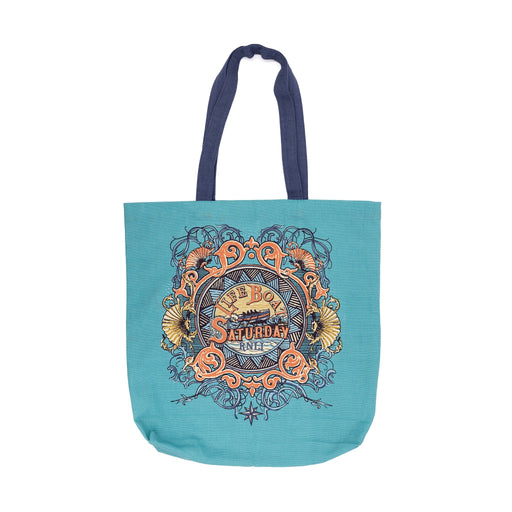 Shop in style with this tote bag, which features a colourful Lifeboat Saturday design and contrasting navy handles. Whether you’re going shopping or running some errands, it’s a smart and practical addition to any outfit.