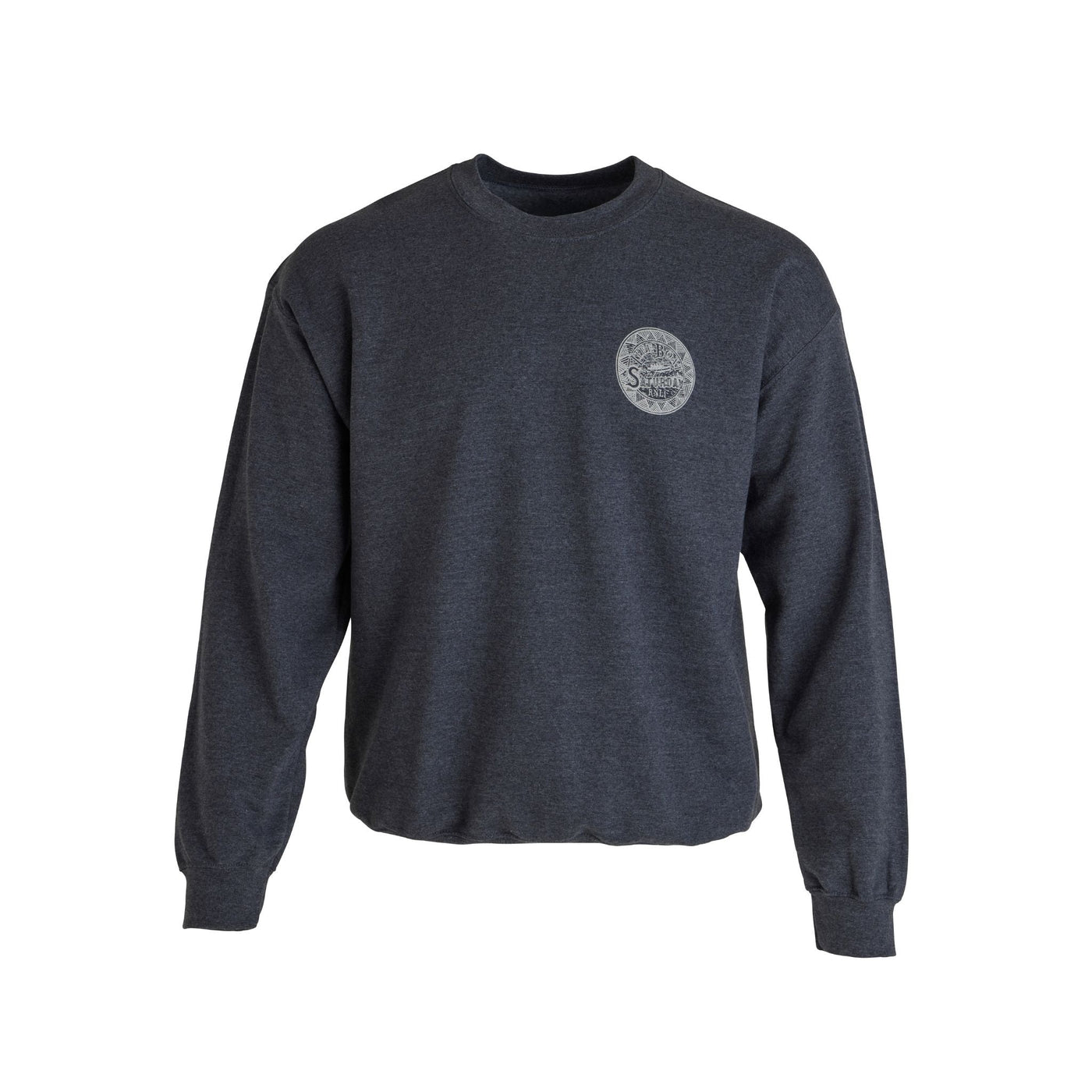 The print on the chest of this unisex grey sweatshirt has a nostalgic feel about it, and a nod to our Lifeboat Saturday range.