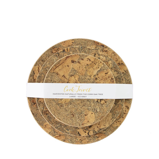 Set of three ice grey chunky cork trivets - environmentally friendly, heatproof, shock absorbent, lightweight and tactile.