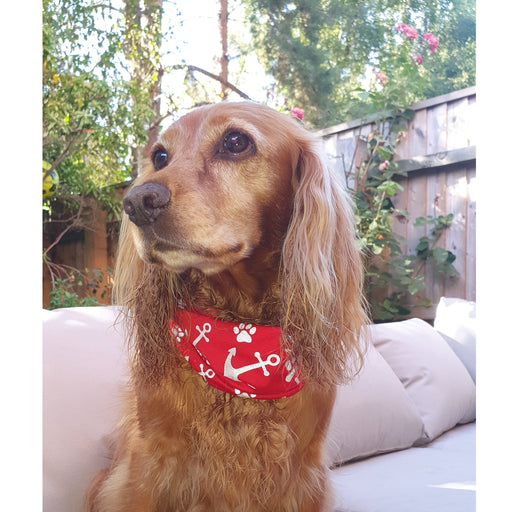 Our red RNLI dog bandana is a stylish accessory for your pooch. Featuring a fun anchor and paw print design, it also has reflective elements to make your dog easier to spot in low light.