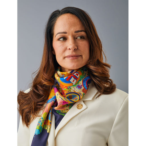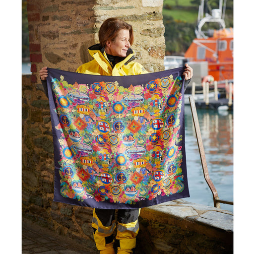 Within this stunning, pure silk twill scarf is beautiful symbolism. From the yellow rose, representing the friendship and joy found in RNLI communities. To the star boat badge that symbolises a beacon of hope, which the RNLI is to everyone they rescue. Talented Print Designer Emma Mawston designed the print to represent all of the RNLI’s rich, 200-year history.