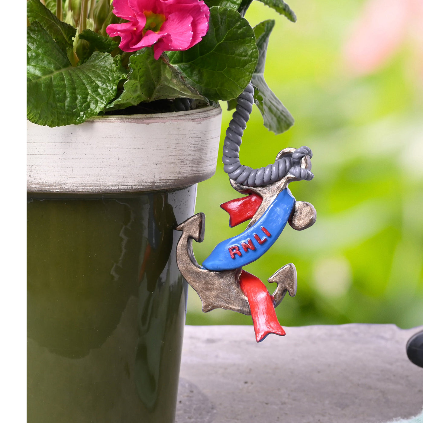 Remind yourself of your RNLI crews with this attractive anchor and ribbon-shaped pot hanger. It hangs over the lip of your plant pots as a delightful decoration, suitable for both indoor and outdoor use.