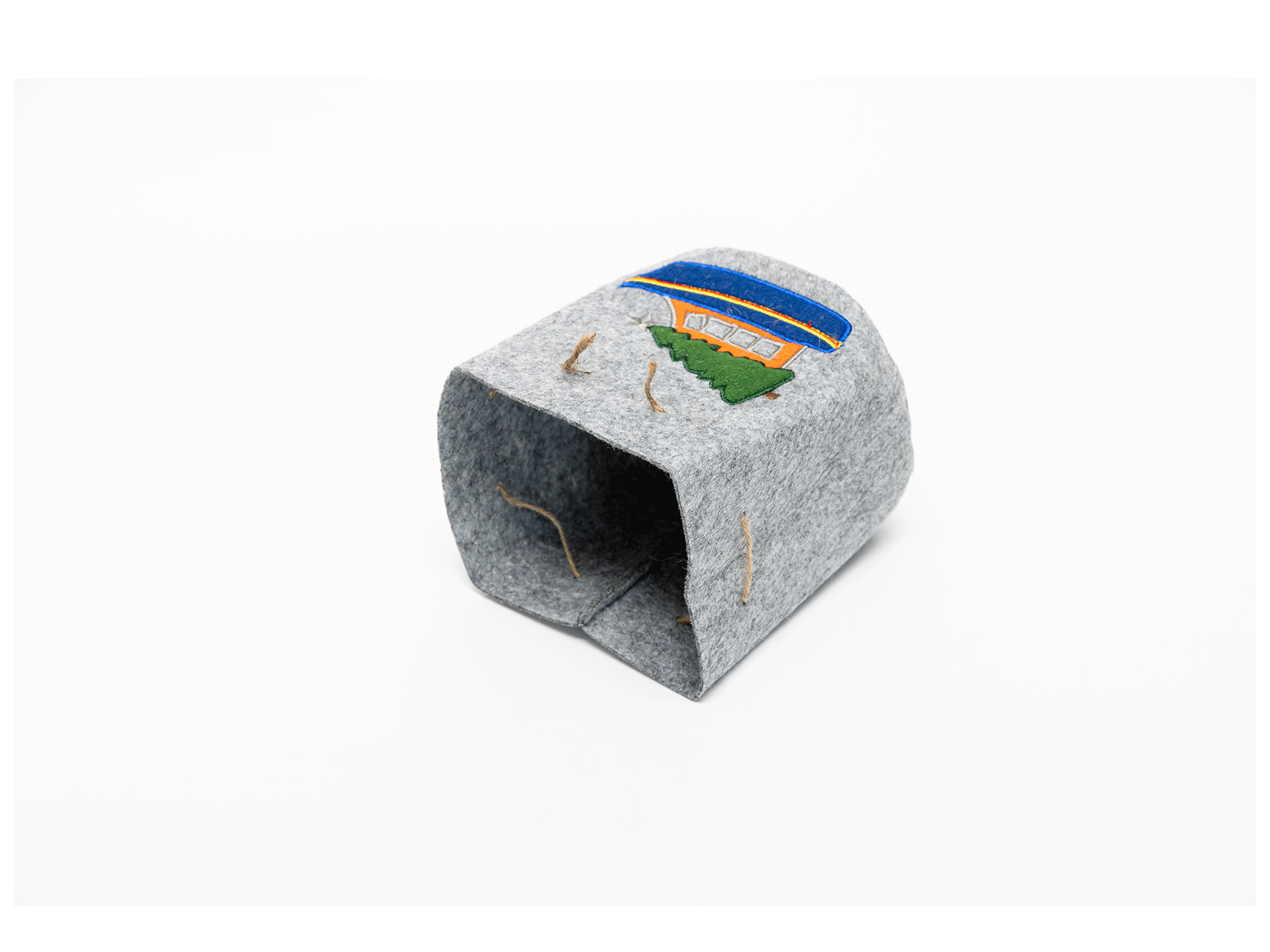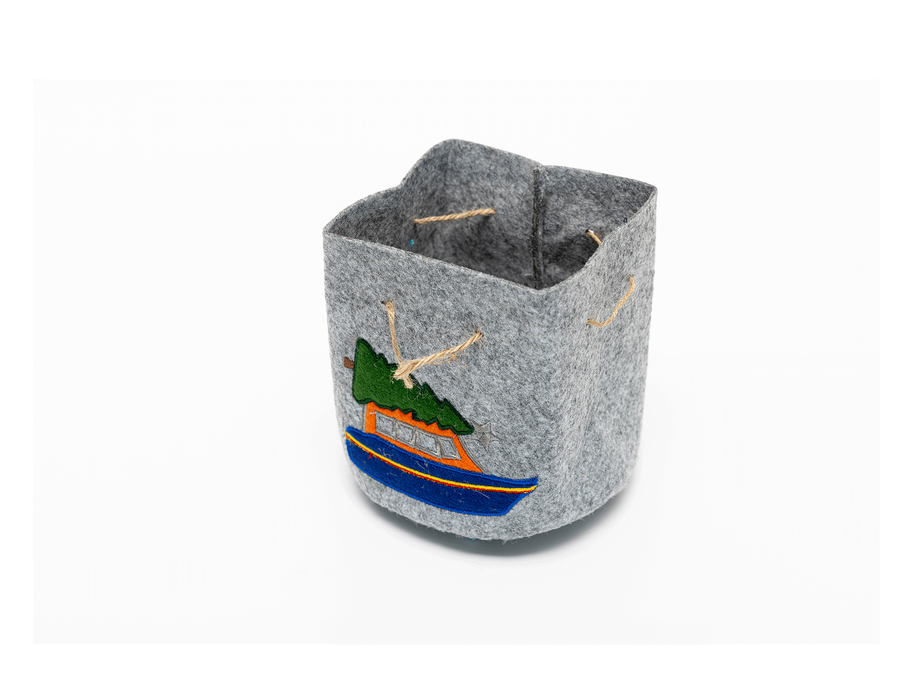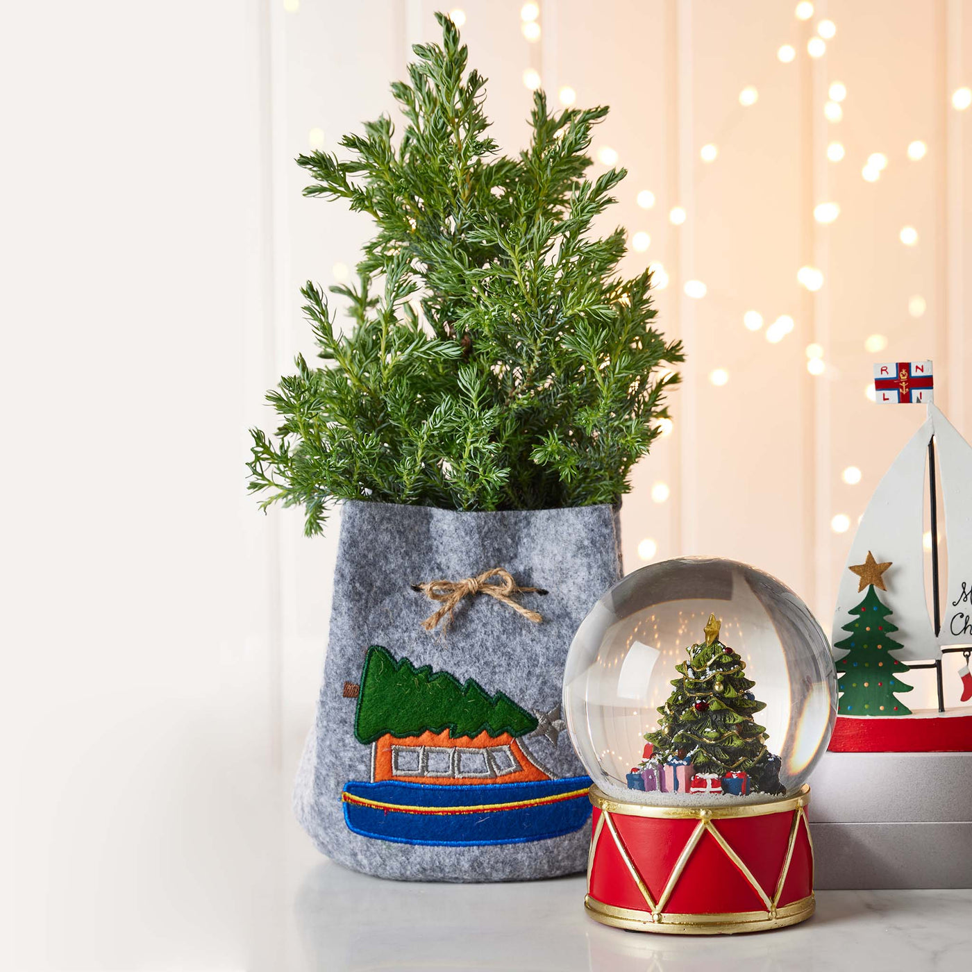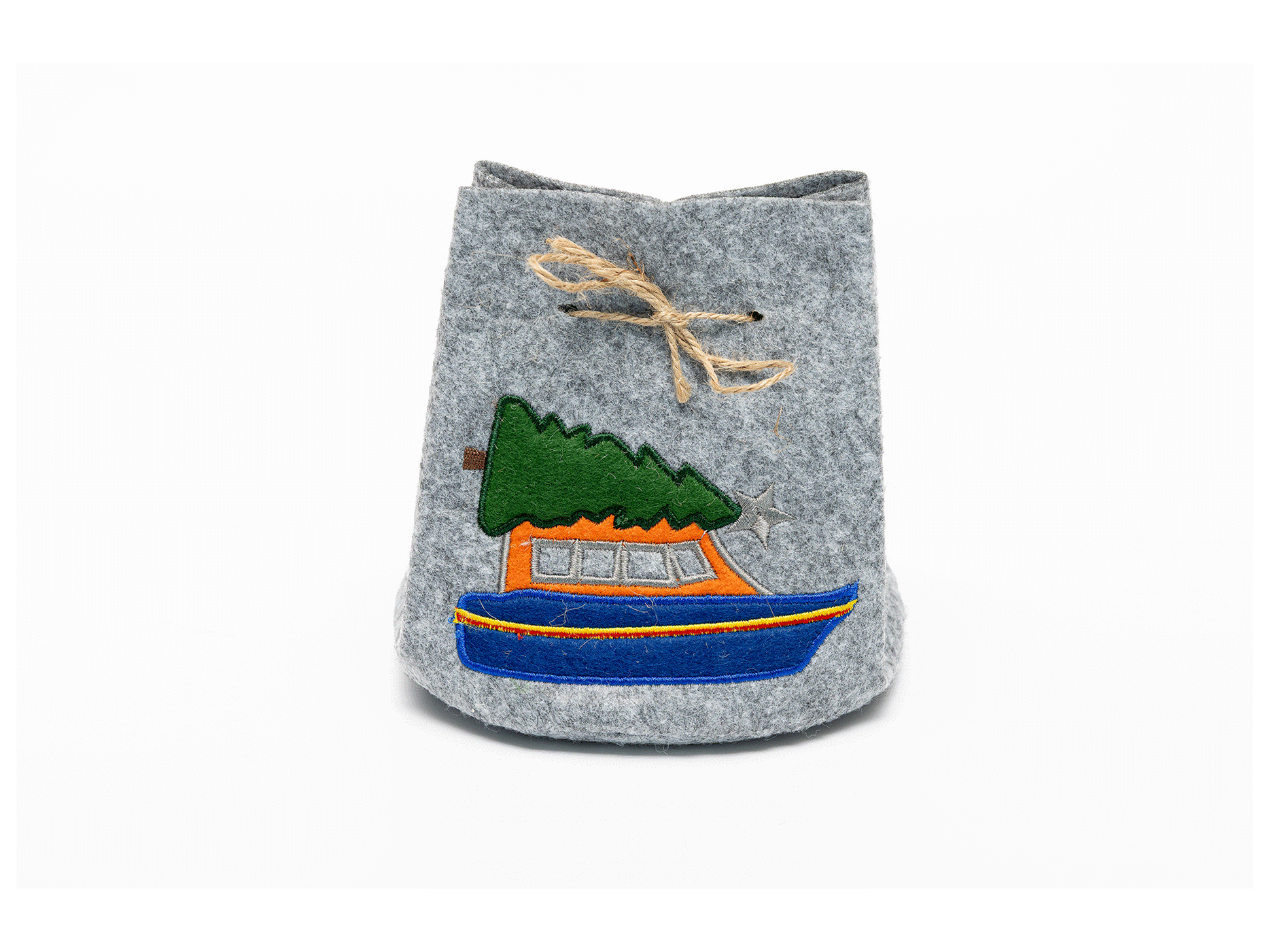 Made from grey felt with a rope tie, this charming RNLI-themed gift bag features a colourful lifeboat design carrying a Christmas tree - a fun nod and heartwarming nod to our lifesaving crews.