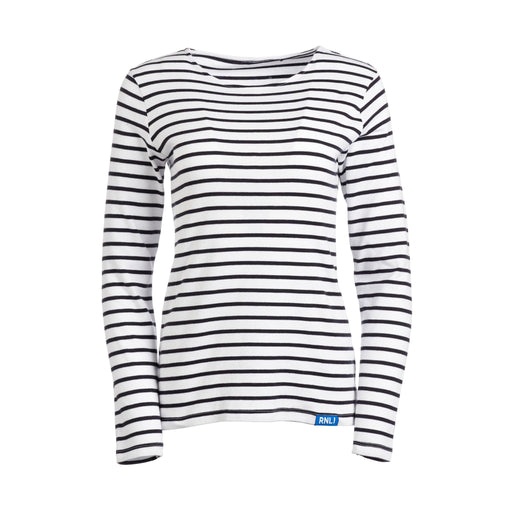 A must-have for your wardrobe, this stylish and elegant striped long-sleeved top for women is finished with a crew neck and soft-feel fabric.