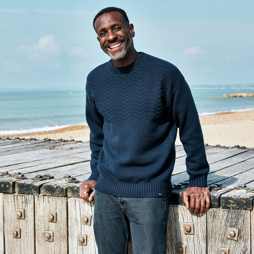 The RNLI Polperro Jumper is a quintessentially British fisherman knit, inspired by traditional Gansey Jumpers made on Cornwall’s South Coast.