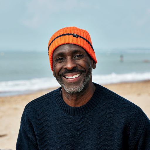 RNLI + Finisterre Fisherman Beanie, Flame/Navy
