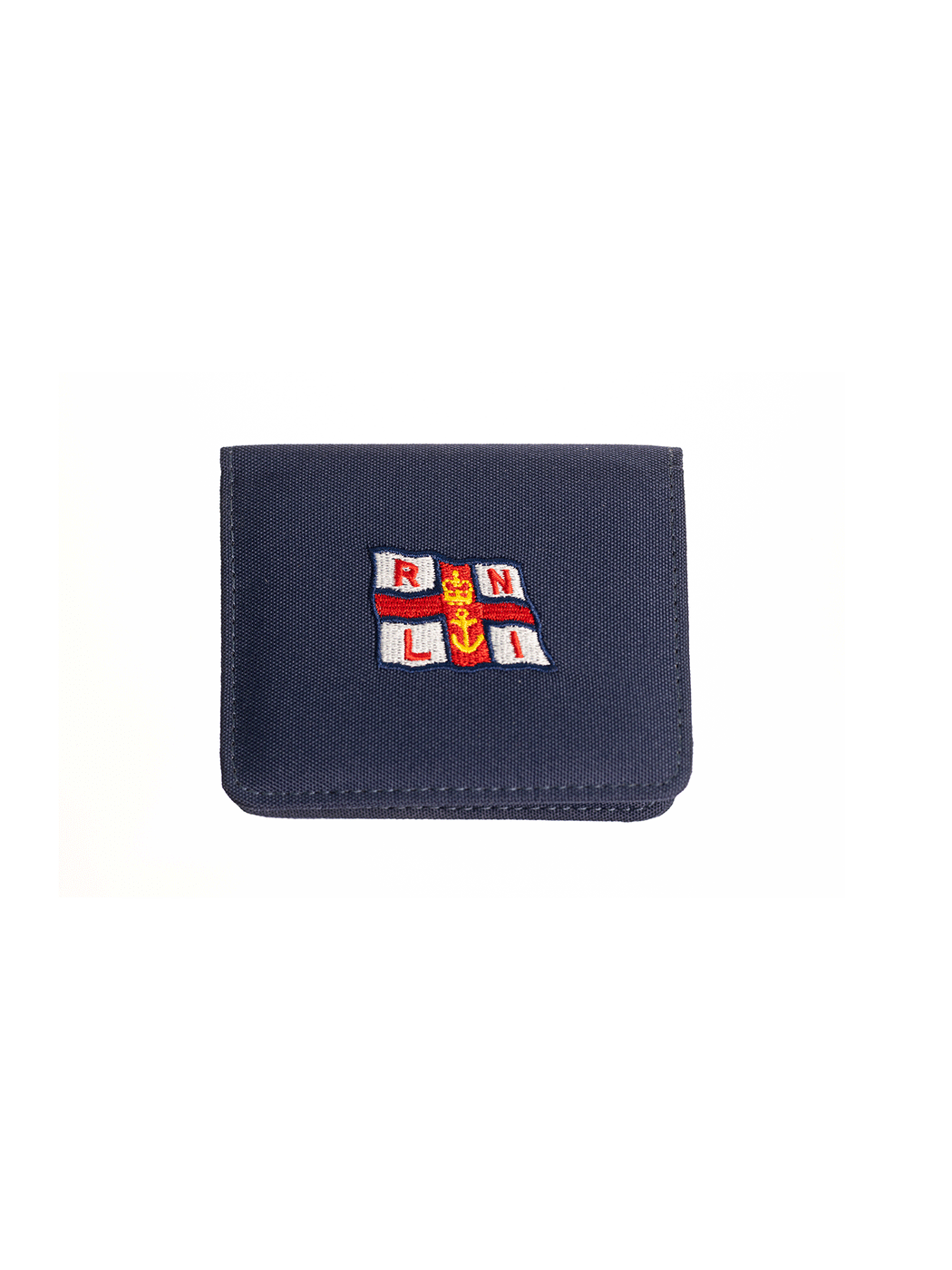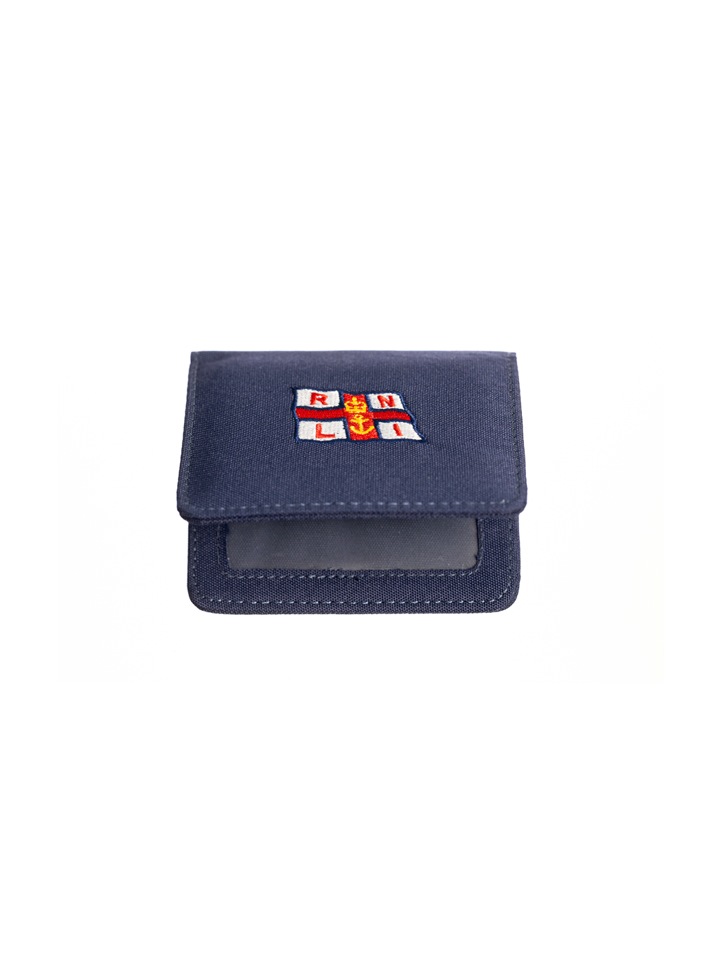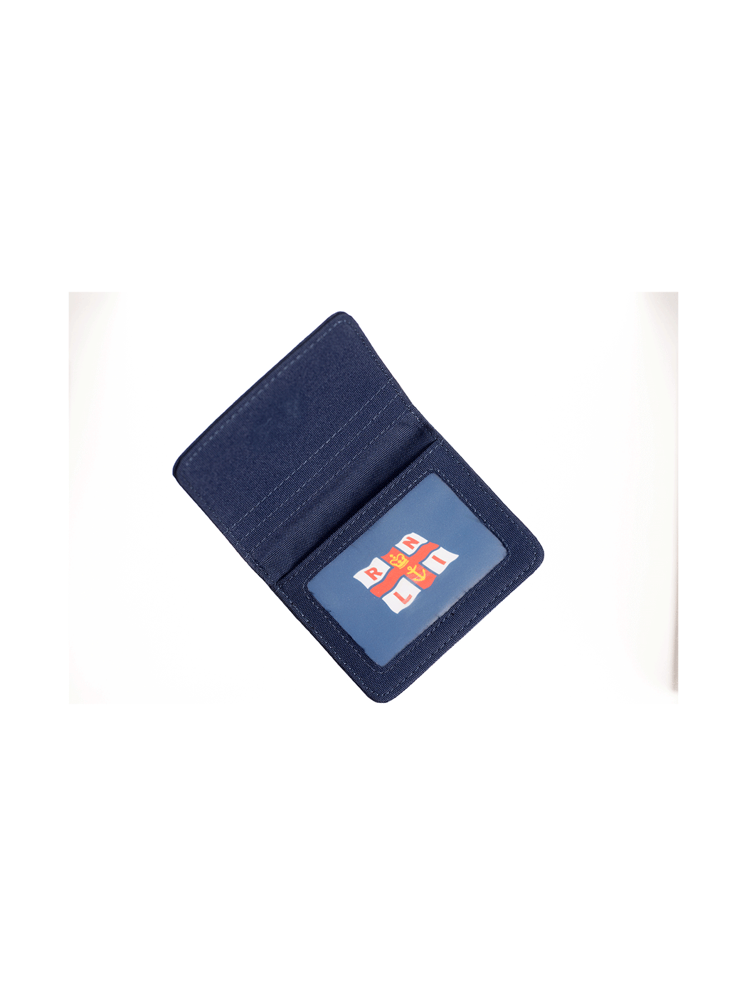 Crafted from 100% recycled polyester, this compact RNLI Flag Card Holder in navy measures 8x10cm and features three card compartments on one side plus a photo photocard compartment on the other. Its durable design proudly displays the RNLI flag, making it a practical and meaningful accessory for everyday use.