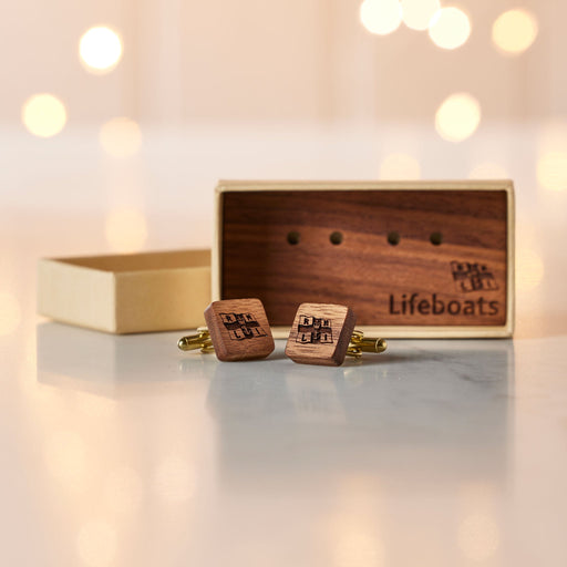 Treat the lifeboat lover in your life to something truly special, with these solid walnut wooden square cufflinks engraved with the RNLI flag.
