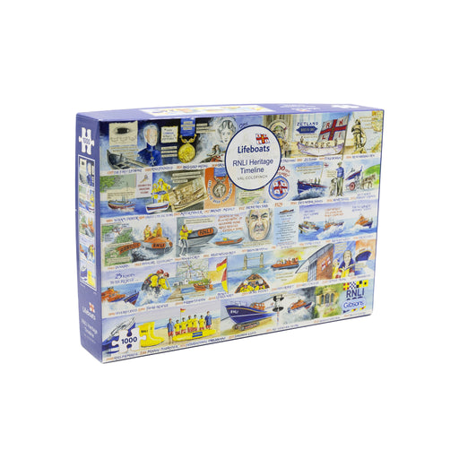 Painted for the RNLI by artist Val Goldfinch, this 1000-piece jigsaw captures remarkable moments, from the RNLI's founding in 1824 to the launch of our first Shannon Class lifeboat.
