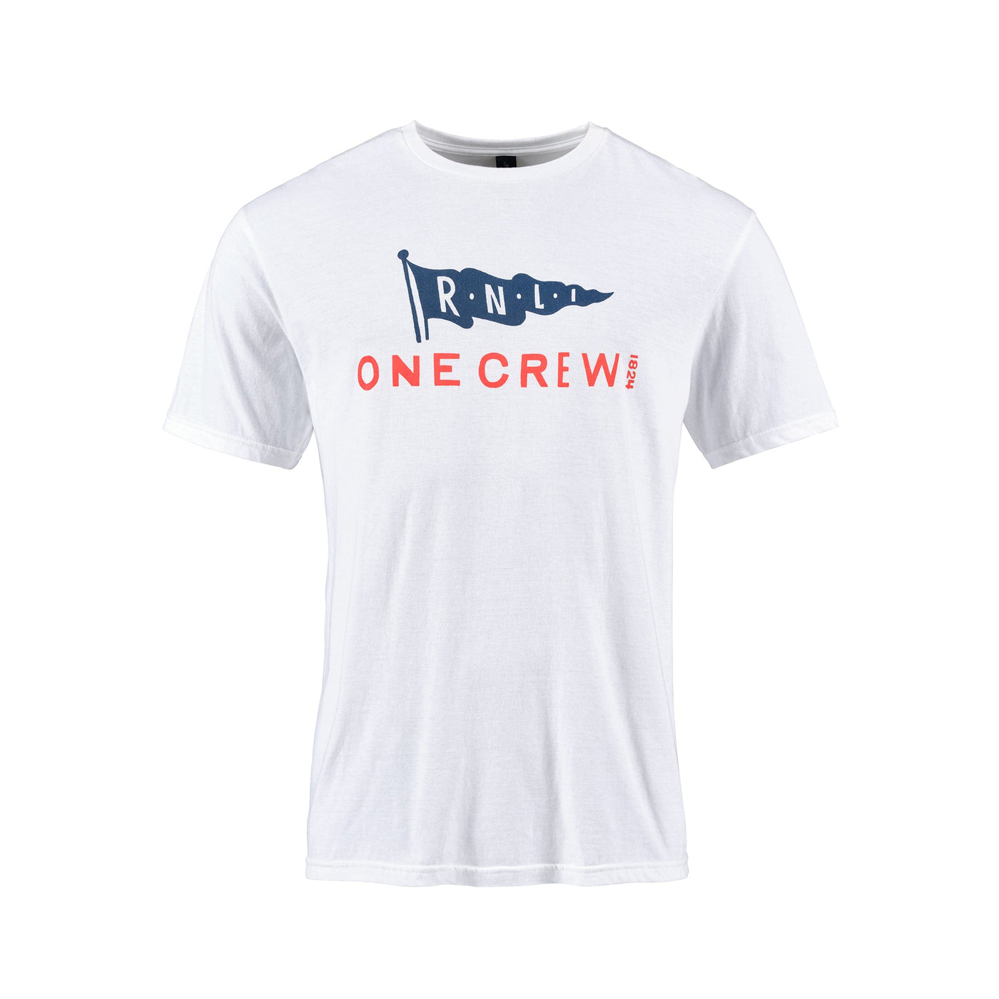 This white T-shirt is versatile enough to wear with almost any outfit. The red and navy One Crew print puts a modern twist on classic nautical design – perfect for days by the water.