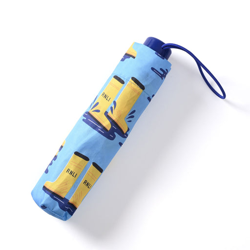 Compact umbrella with RNLI yellow welly print.