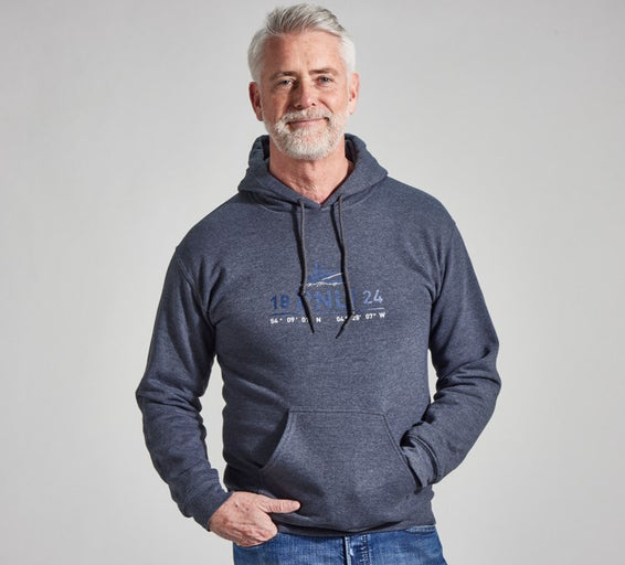 This soft dark grey hoody features a blue RNLI Since 1824 design printed on the chest. It has a large kangaroo pocket for keeping your hands warm on chillier days. The hood also has an adjustable drawcord for your comfort.