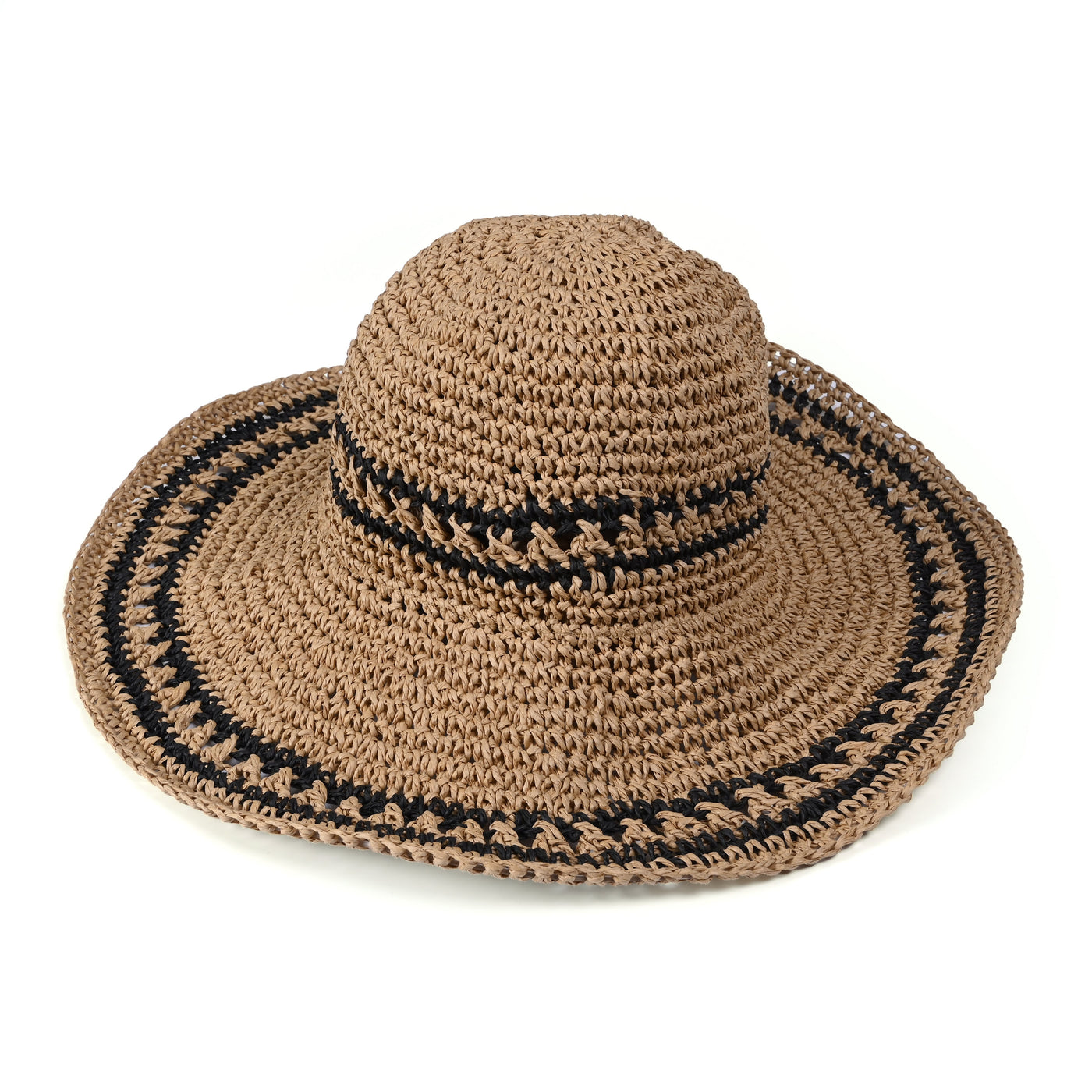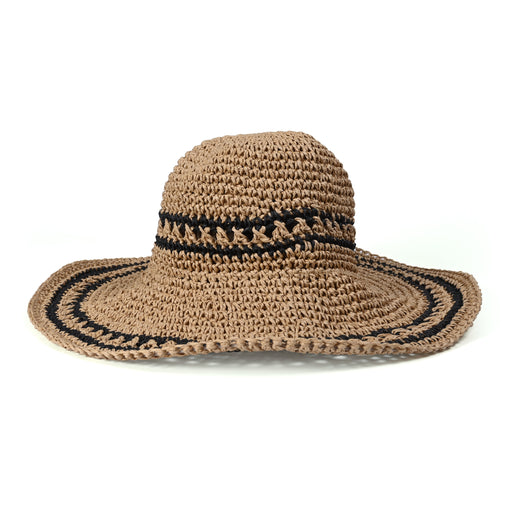 For stylish sun protection, look no further than this sun hat! With a tan crochet base and contrasting black stripes around the head and brim, it’s a timeless and versatile addition to your summer wardrobe.