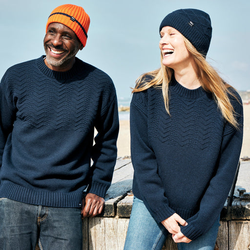 The RNLI Polperro Jumper is a quintessentially British fisherman knit, inspired by traditional Gansey Jumpers made on Cornwall’s South Coast.